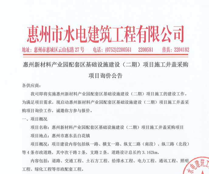 惠州市水電建筑工程有限公司成立于一九六四年四月,隸屬惠州市水務(wù)集團(tuán)有限公司,是一家國(guó)有綜合性施工企業(yè),主營(yíng)水利水電工程、房屋建筑、市政工程等施工業(yè)務(wù)。公司擁有水利水電工程施工總承包一級(jí)、建筑工程施工總承包一級(jí)、市政公用工程施工總承包一級(jí)、公路工程施工總承包三級(jí),公路路基、路面及建筑裝修裝飾專(zhuān)業(yè)承包二級(jí),環(huán)保工程、機(jī)電安裝、河湖整治、輸變電工程專(zhuān)業(yè)承包三級(jí)等經(jīng)營(yíng)資質(zhì)……
